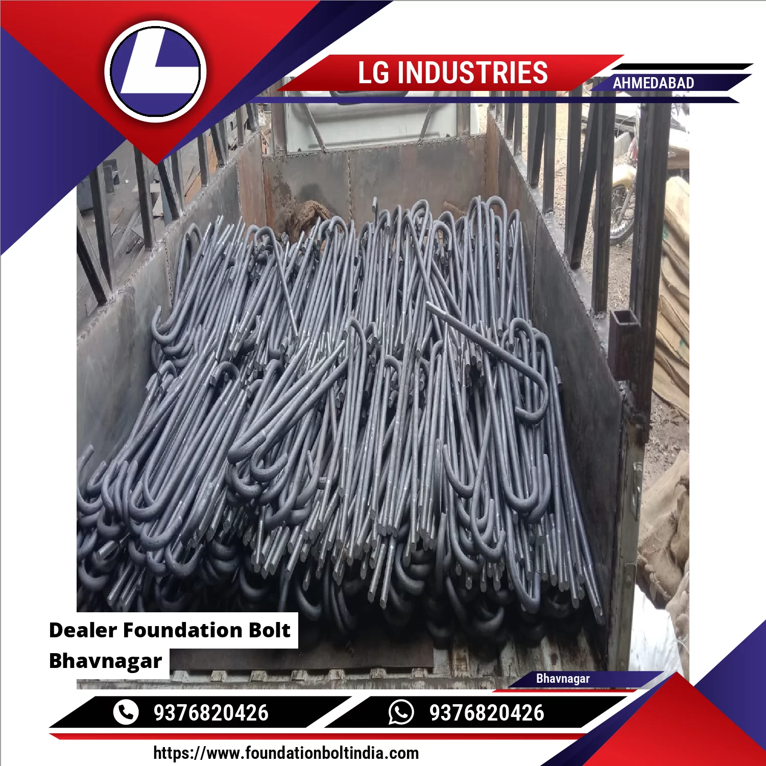 LG Industries manufacturer, supplier and dealer of Foundation Bolt is a heavy-duty fastener used to anchor structures, equipment, or machinery to concrete foundations. It is embedded into concrete to provide a strong, stable connection between the foundation and the structural element. Foundation bolts are critical for transferring static and dynamic loads, including tension, shear, vibration, and uplift forces, into the foundation safely.