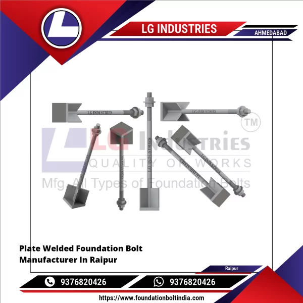 LG Industries Manufacture Plate Welded Foundation Bolt Is A Type Of Anchor Bolt In Which A Steel Plate Is Welded To The Embedded End Of The Bolt To Enhance Anchorage And Pull-out Resistance When Cast Into Concrete. It Is Widely Used For Securing Pipes, Columns, Equipment, And Structural Steel To Concrete Foundations.The Bolt Consists Of A Threaded Rod With A Square Or Rectangular Anchor Plate Welded At The Bottom End. When Embedded In Concrete, The Welded Plate Provides Mechanical Interlock, P Continue