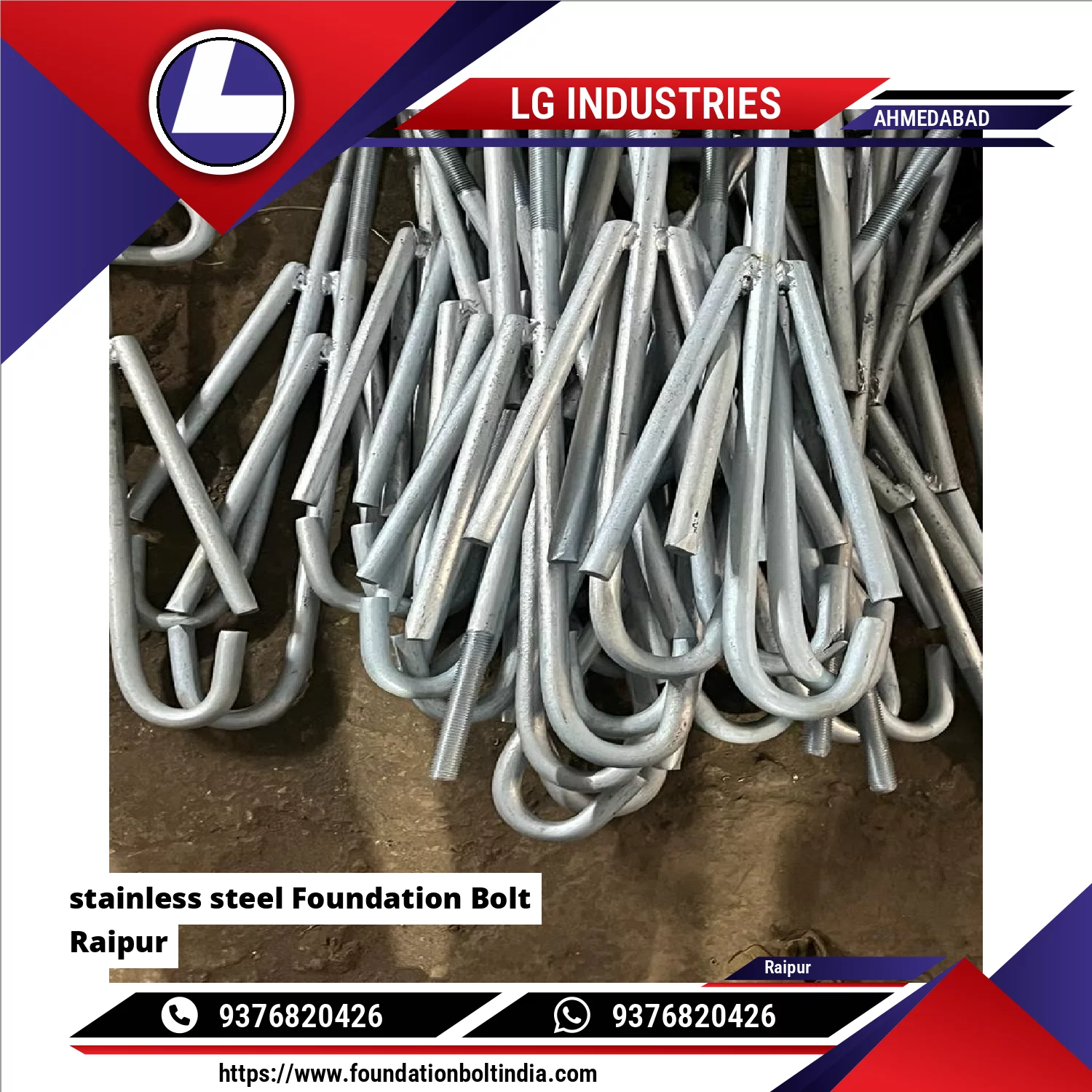 LG Industries manufactures stainless Steel Foundation Bolt is a corrosion-resistant anchoring fastener used to fix structural steel, machinery, columns, and equipment to concrete foundations. Made from high-grade stainless steel, these bolts offer excellent resistance to rust, chemicals, moisture, and extreme environments, making them ideal for long-term and critical applications.