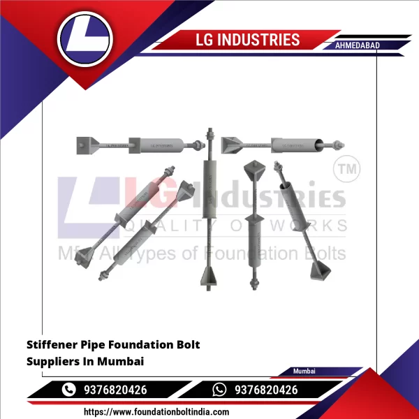 LG Industries Manufactures Stiffener Pipe Foundation Bolt Is A Heavy-duty Anchoring Bolt Used For Fixing Steel Structures, Columns, And Heavy Machinery To Concrete Foundations. It Consists Of A Threaded Foundation Bolt Combined With A Stiffener Pipe And Welded Anchor Plate, Designed To Provide High Rigidity, Load Distribution, And Resistance To Bending.Construction DetailsThreaded Bolt / Stud: Mild Steel Or High-tensile SteelStiffener Pipe: Welded Along The Bolt Length To Increase Stiffnes Continue