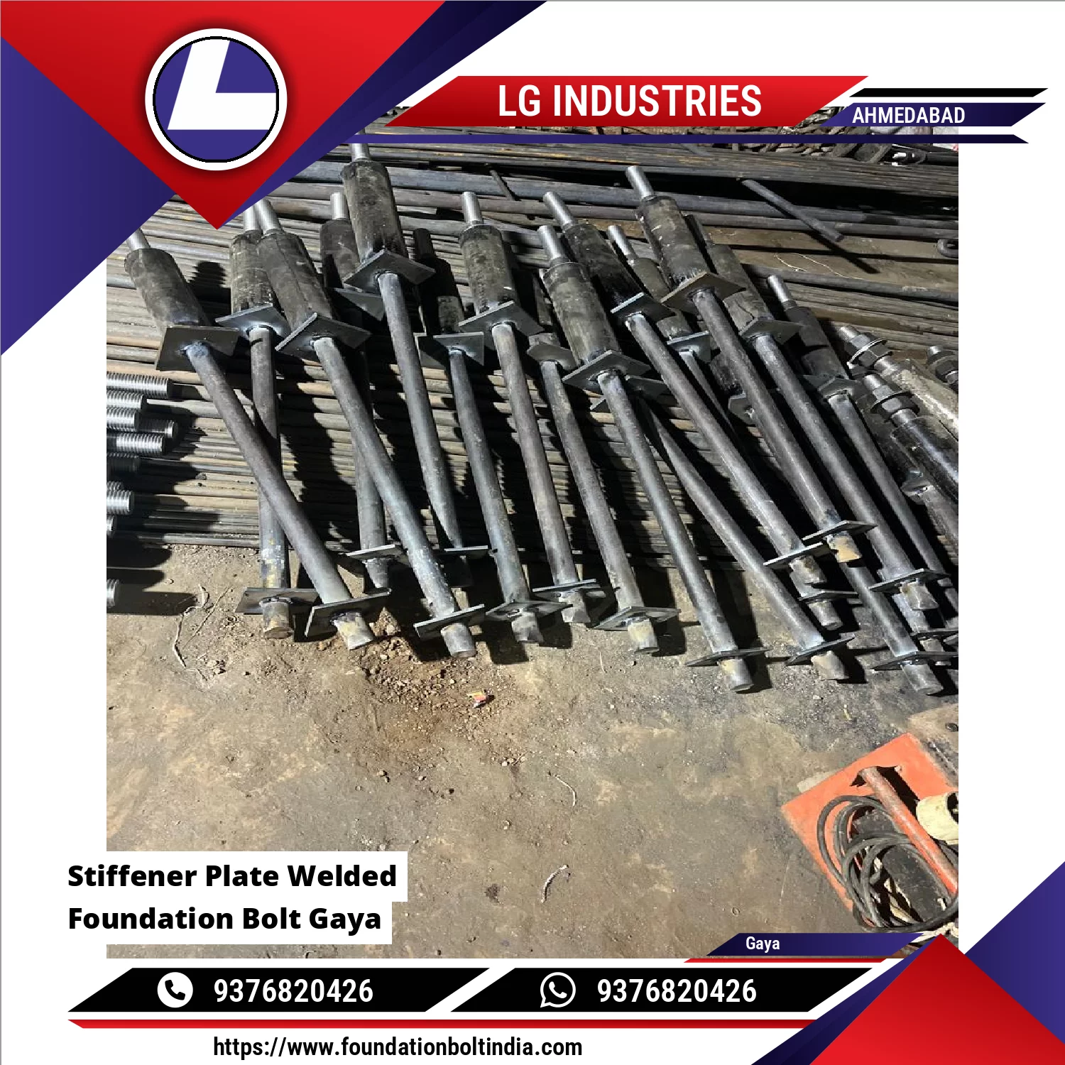 Stiffener Plate Welded Foundation Bolt Is A Heavy-duty Anchoring System Designed For Critical Structural And Equipment Foundations Subjected To High Loads, Vibration, And Dynamic Forces. It Consists Of A Threaded Foundation Bolt With A Welded Anchor Plate, Reinforced By Stiffener Plates Welded Between The Bolt And Anchor Plate To Enhance Structural Rigidity And Load Transfer. LG INdustries Manufactures Foundation Bolt In AhmedabadThe Addition Of Stiffener Plates Significantly Reduces Bending S Continue