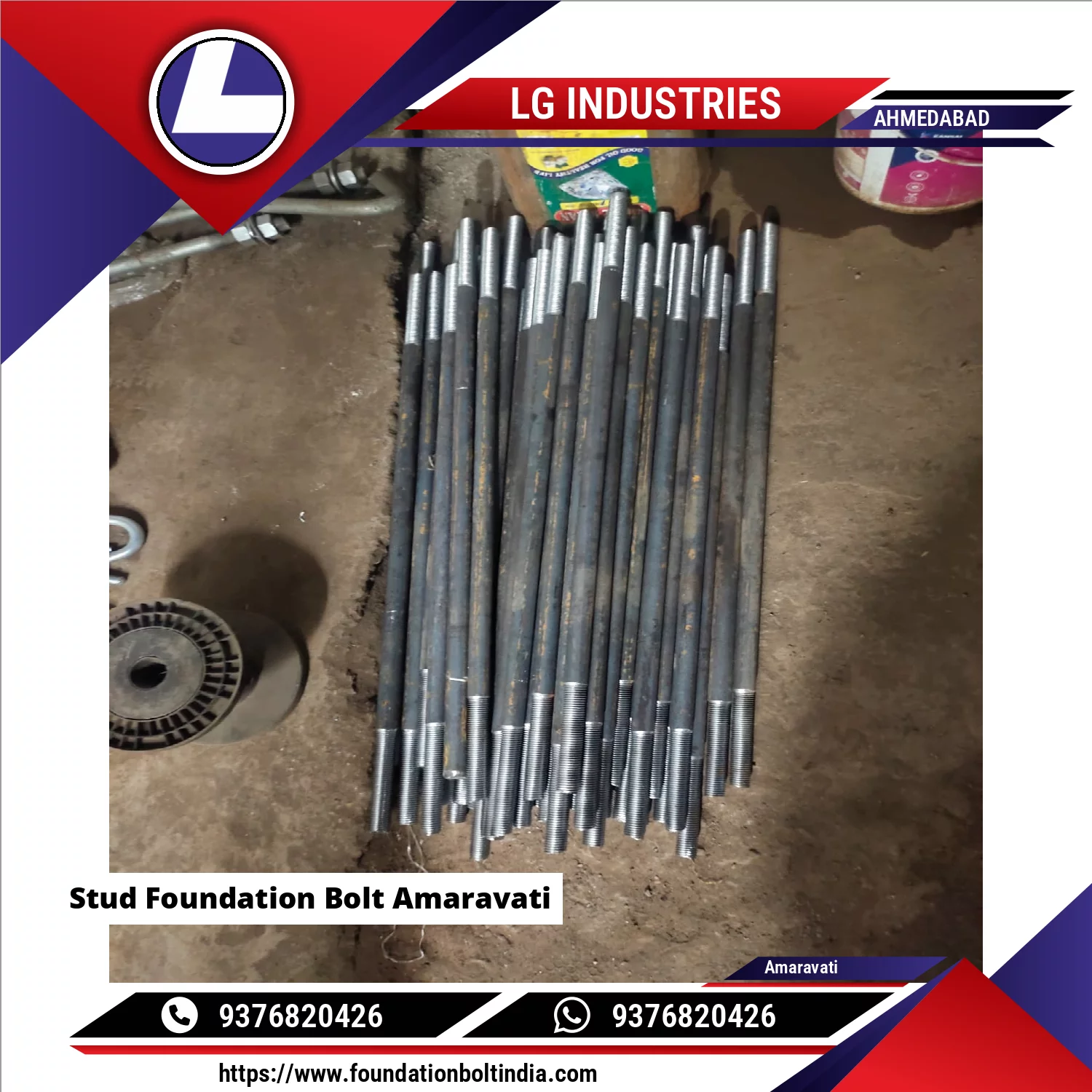 Stud Foundation Bolt manufactured by LG Industries is a straight, fully or partially threaded anchor bolt used to fasten steel structures, base plates, and equipment to concrete foundations. It is typically installed with anchor plates or chemical grouting to achieve strong and reliable anchorage.